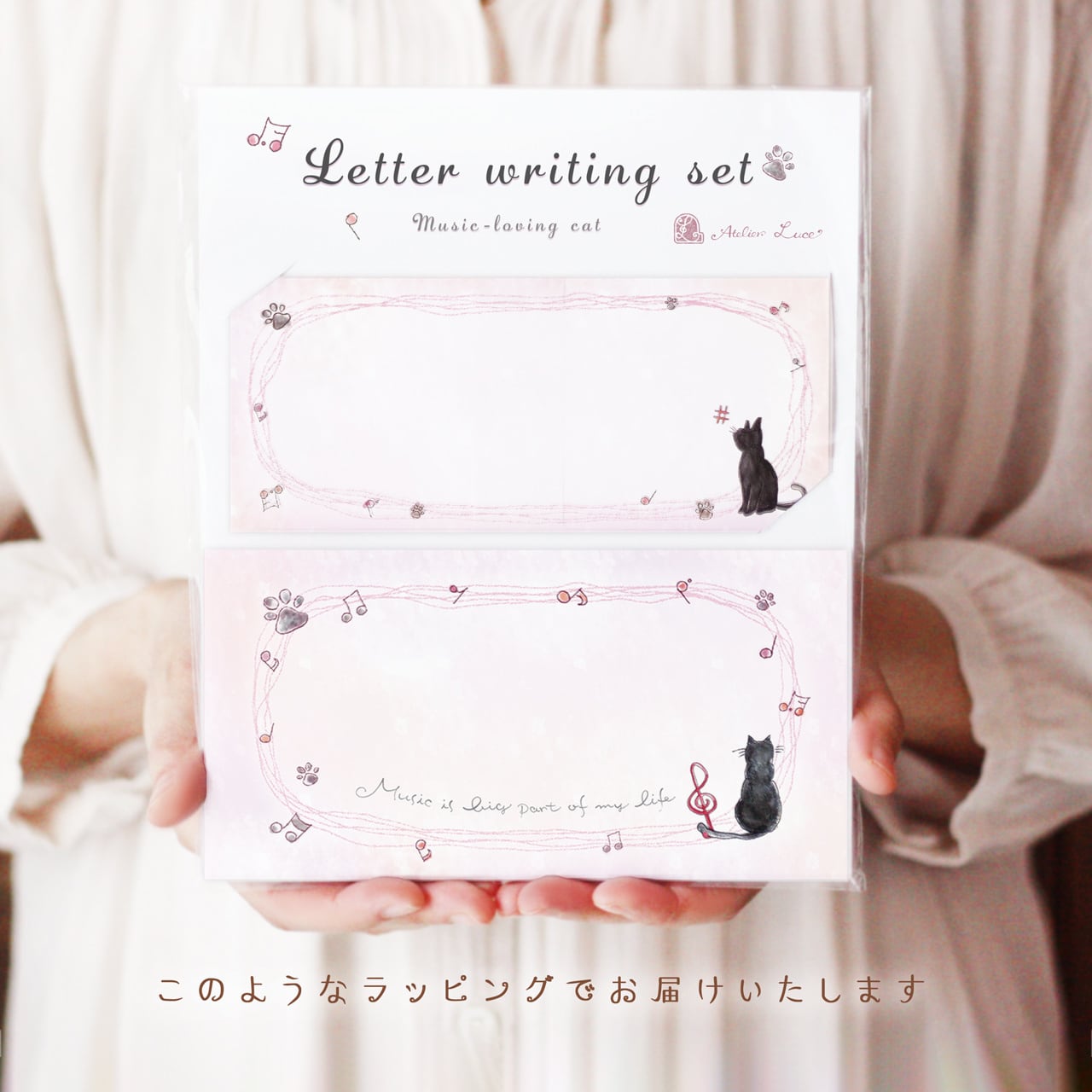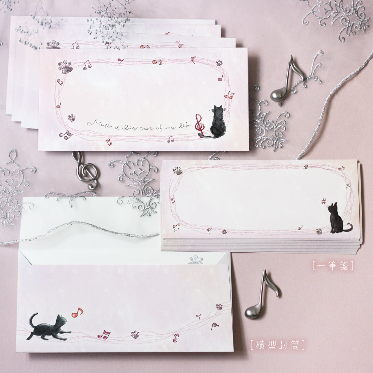 【11/26(水) 21時~発売♪】封筒&一筆箋セット『Music-loving cat 』 ~ Atelier Luce 〜[Y1-11]