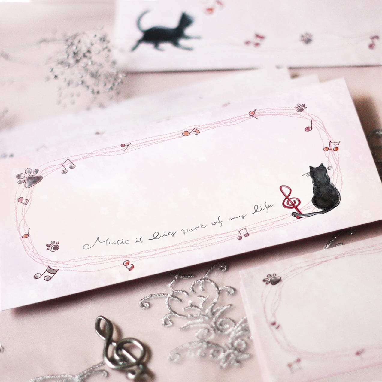 封筒&一筆箋セット『Music-loving cat 』 ~ Atelier Luce 〜[Y1-11]